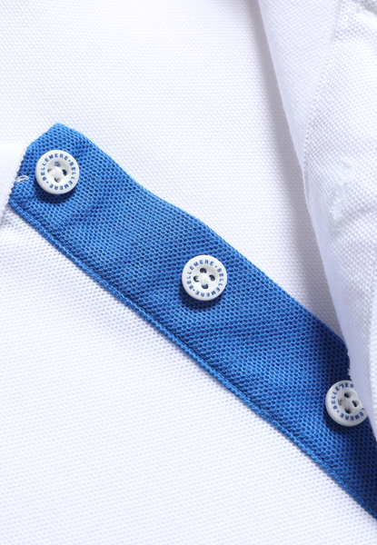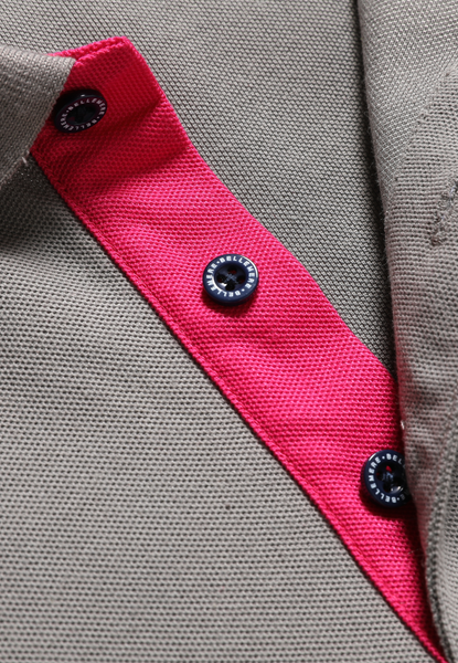 • Contrast details at the hemlines and on the placket
