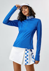 Sporty, stylish and comfortable, this women’s top will become your go-to. It’s tailored with a distinctive checkered collar for an eye-catching look, framed with sculpted long sleeves. The full zipper closure offers convenience and functionality in one, completed with side pockets to keep your mini essentials at hand. Underarm gusset keeps it breezy in warm weather.